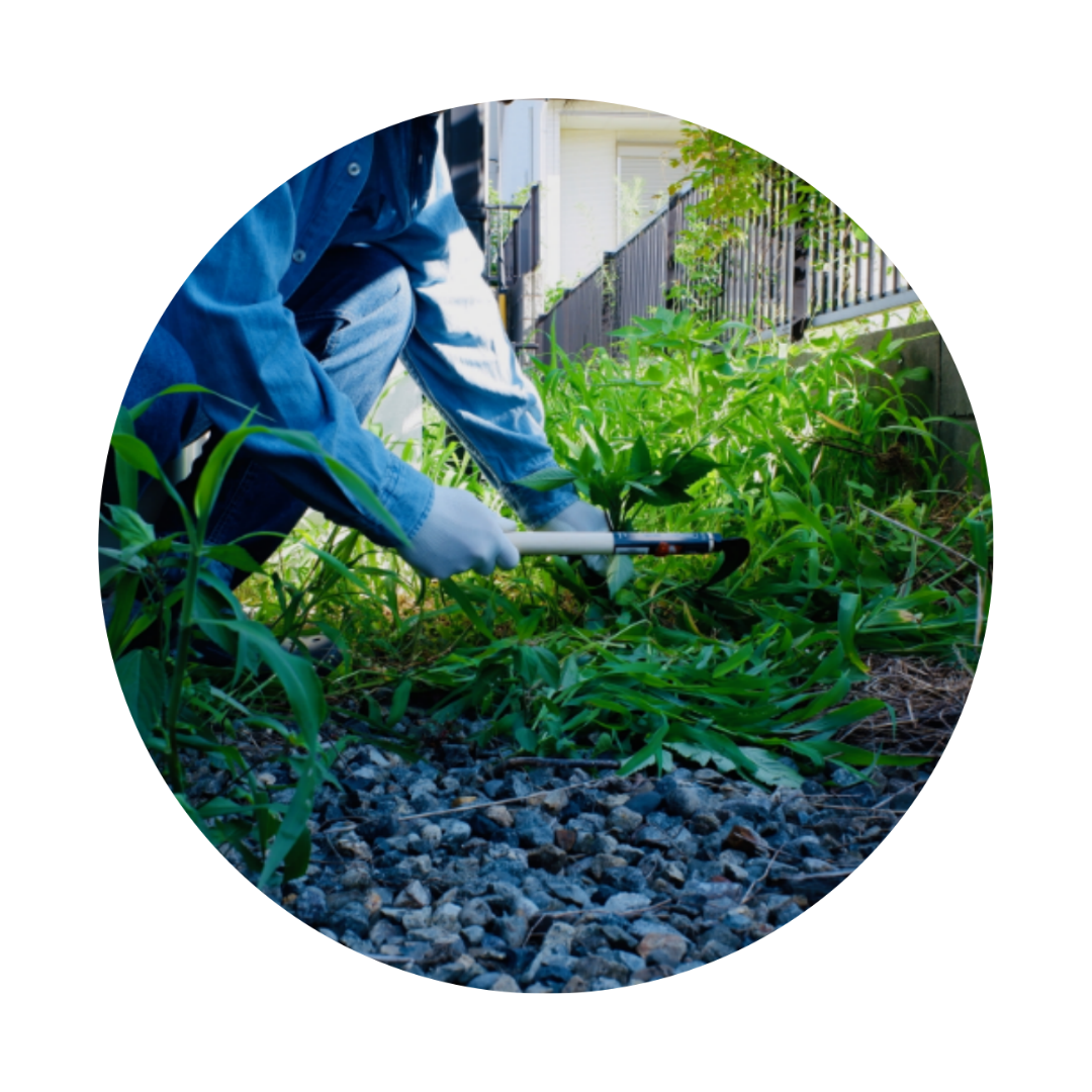 高齢や多忙でお手入れが難しい方にも好評の草刈り・草取りサービス。状況に応じて機械刈りと人力作業で対応。