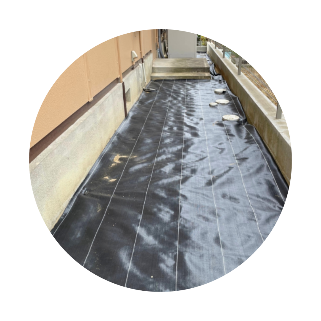 せっかくきれいにしても、またすぐ雑草が…という方におすすめなのが、防草対策。防草シートの施工で、長期間草の発生を抑えます。