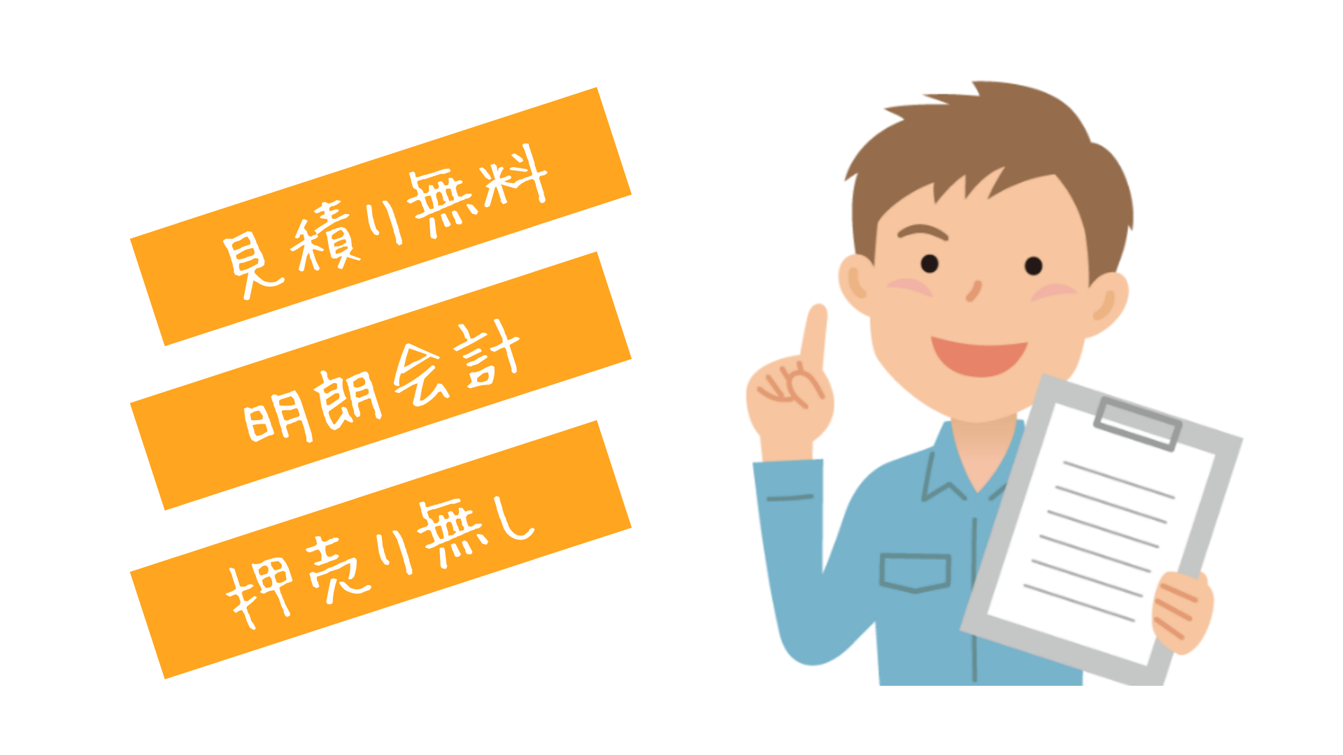 ご安心ください、お見積り金額以外いただくことはありません。追加のご依頼があれば、それに応じた料金が必要となりますが事前にお客様にお伺いいたします。