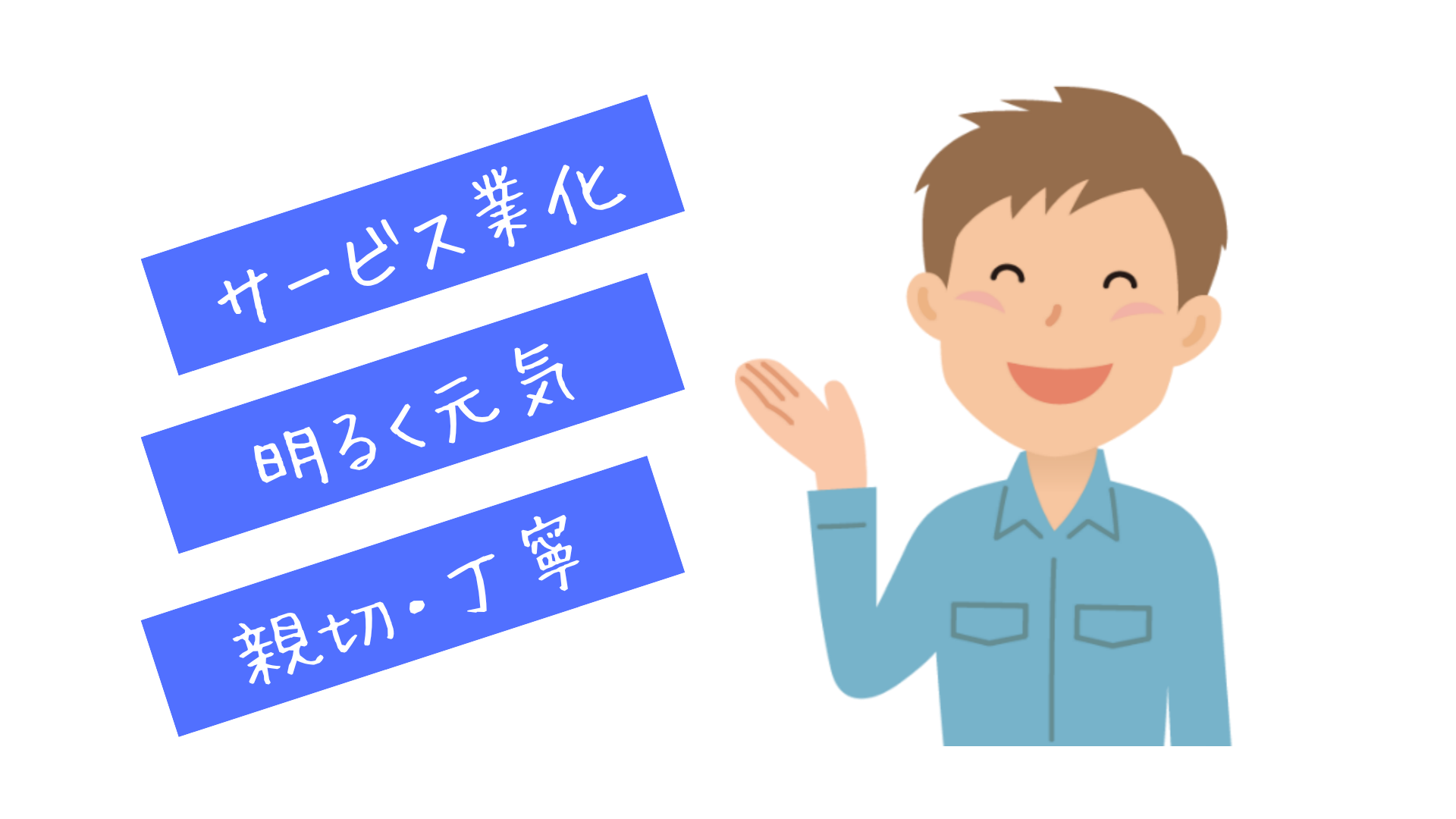 | 接客対応 | ◎サービス業として丁寧・親切に対応。 | ○職人気質で無愛想なことが多い。 | ○コールセンター経由で事務的になることが多い。 | △高齢の作業員が中心。接客より作業優先。 |