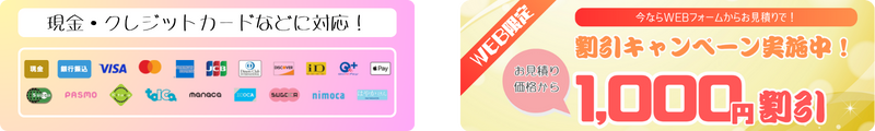 原則、現金でのお支払いをお願いしております。ご事情によっては銀行振込・クレジットカードでのお支払いにも対応いたします。